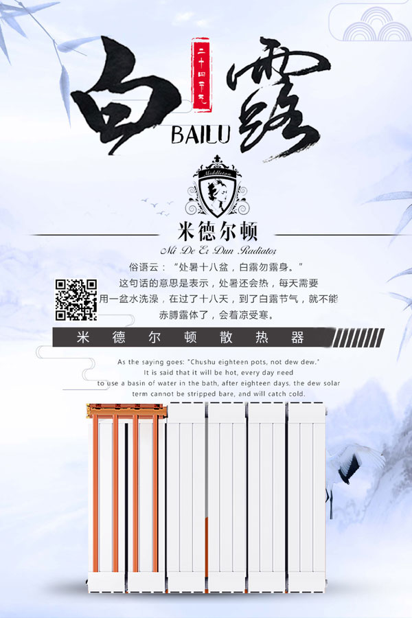 蒹葭蒼蒼,白露為霜。所謂伊人,在水一方。2020年9月7日庚子年七月二十,迎來二十四節(jié)氣中的第十五個節(jié)氣——白露。白露往后,氣候漸漸轉(zhuǎn)涼,這個時候裝置暖氣片是明…